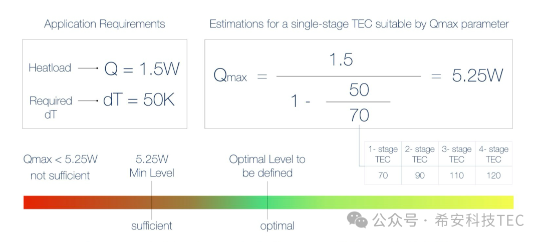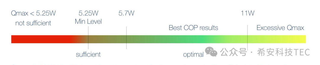 Keperluan inti kanggo pilihan tec: mbukak QC, suhu suhu operasi, suhu akhir panas, DT = Th-TC. Kayata: QC = 1.5w, DT = 50K, qmax = 1,5 (1-50 / 70) = 5.25w. Apa Qmax iki 5.25w Solusi optimal? Ora, 5.25 minangka qmax sing paling cilik ing aplikasi iki. Qmax ora kudu luwih gedhe. Yen luwih gedhe, jumlah pasangan pn bakal luwih gedhe, lan energi dikonsumsi dhewe bakal luwih. Cara ngetung qmax sing paling optimal iki luwih rumit lan mbutuhake insinyur desain termal profesional.